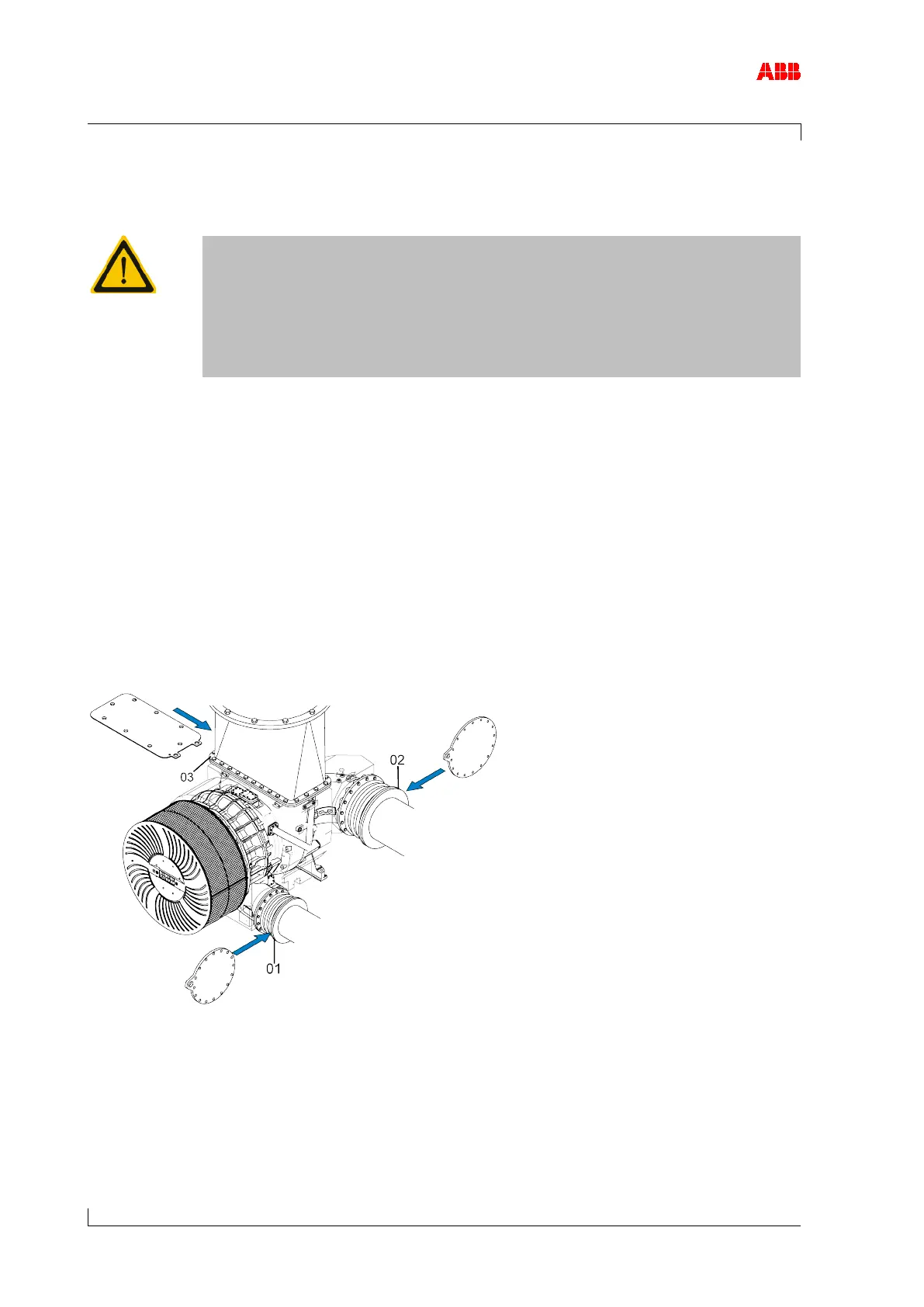 Blank off flanges of compressor casing outlet (01), gas inlet (02) and gas outlet (03) by