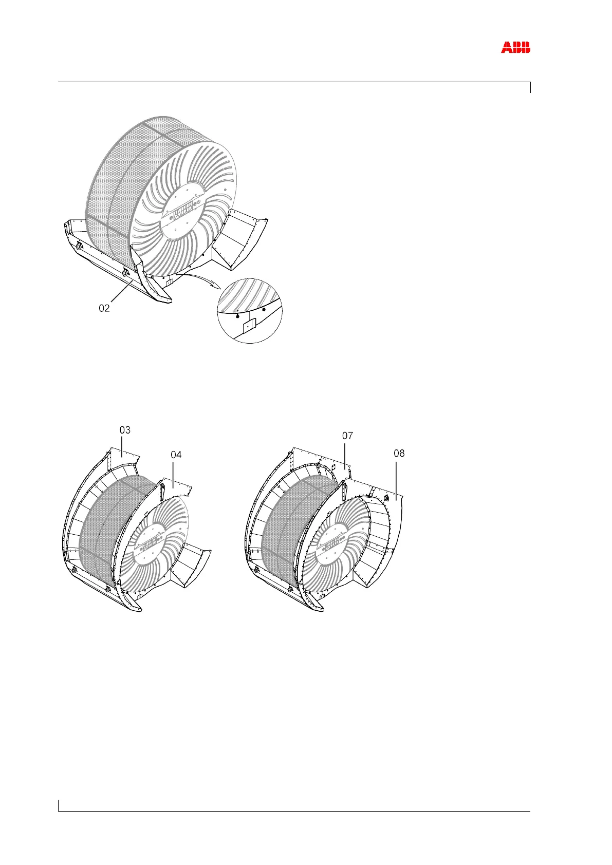Fit the side parts (03) and (04) with the screws on the filter silencer and on the bottom part.