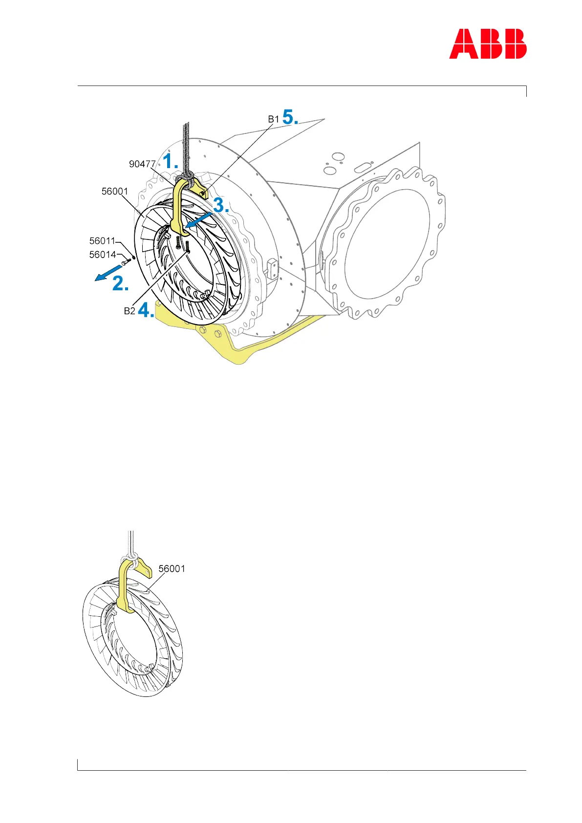 u Use the crane to remove and put down the nozzle ring (56001).