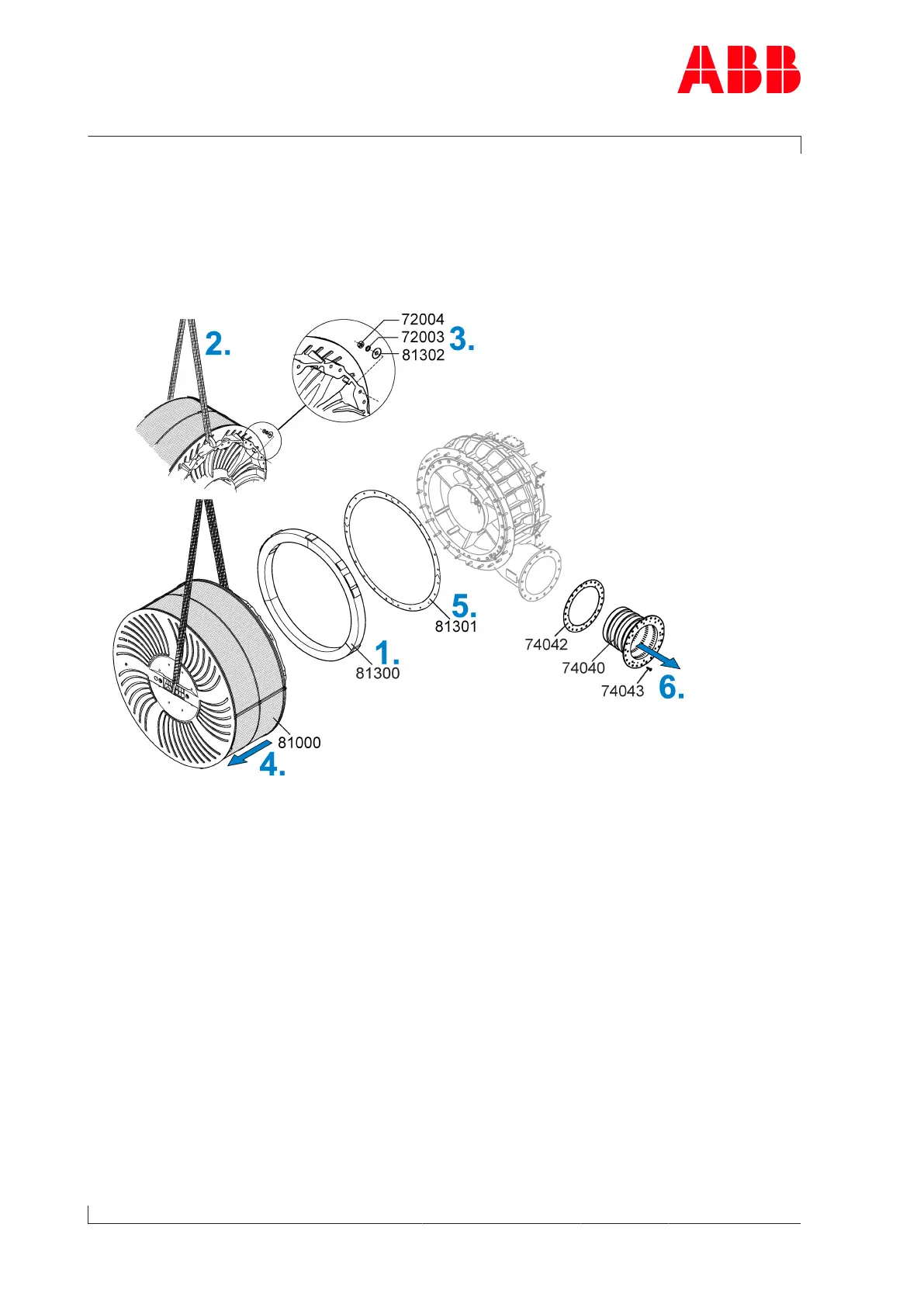 3. Loosen nuts (72004) and remove with washers (72003) and insulating discs (81302).
