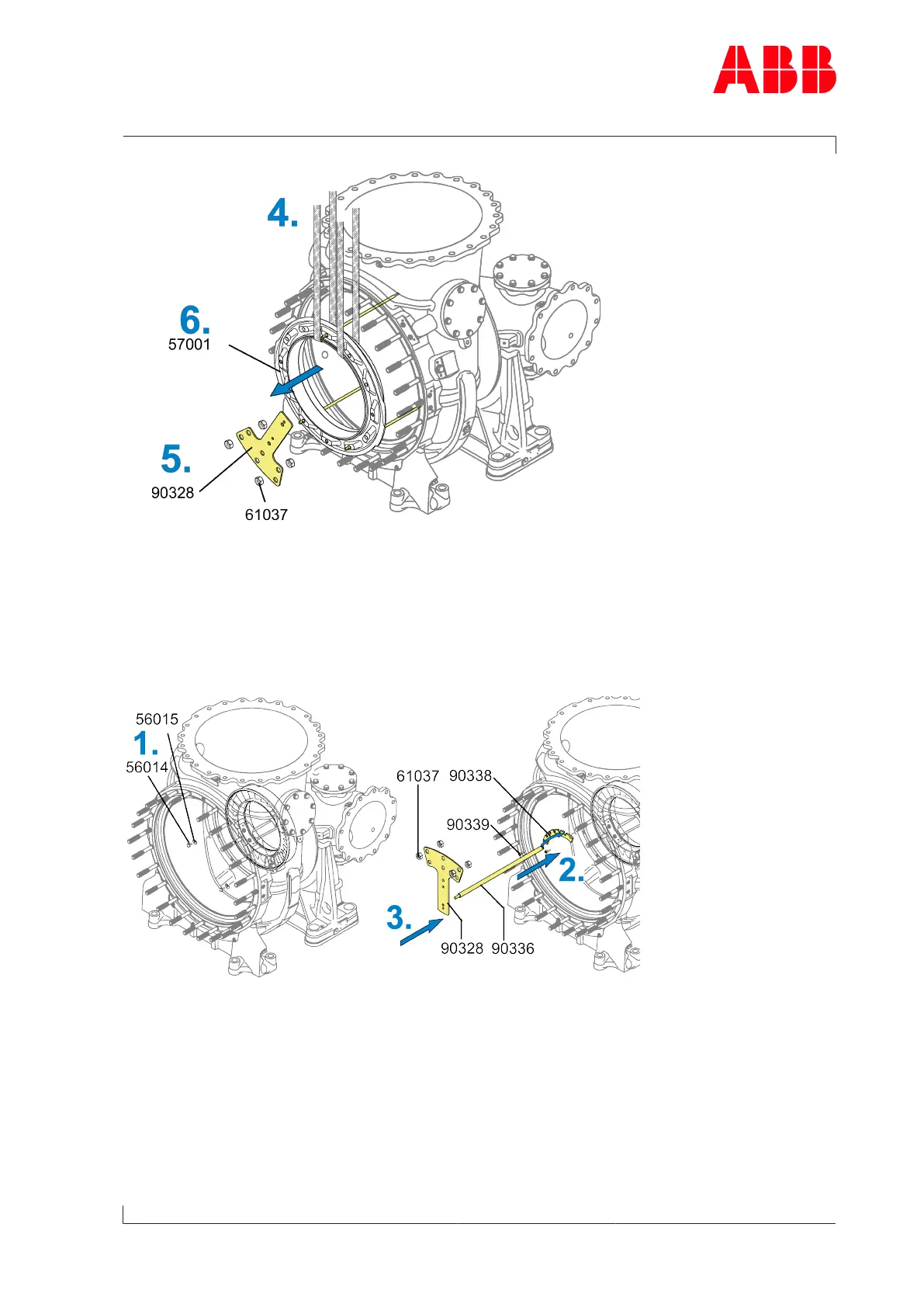 1. Bend open locking washers (56015), loosen and remove screws (56014).