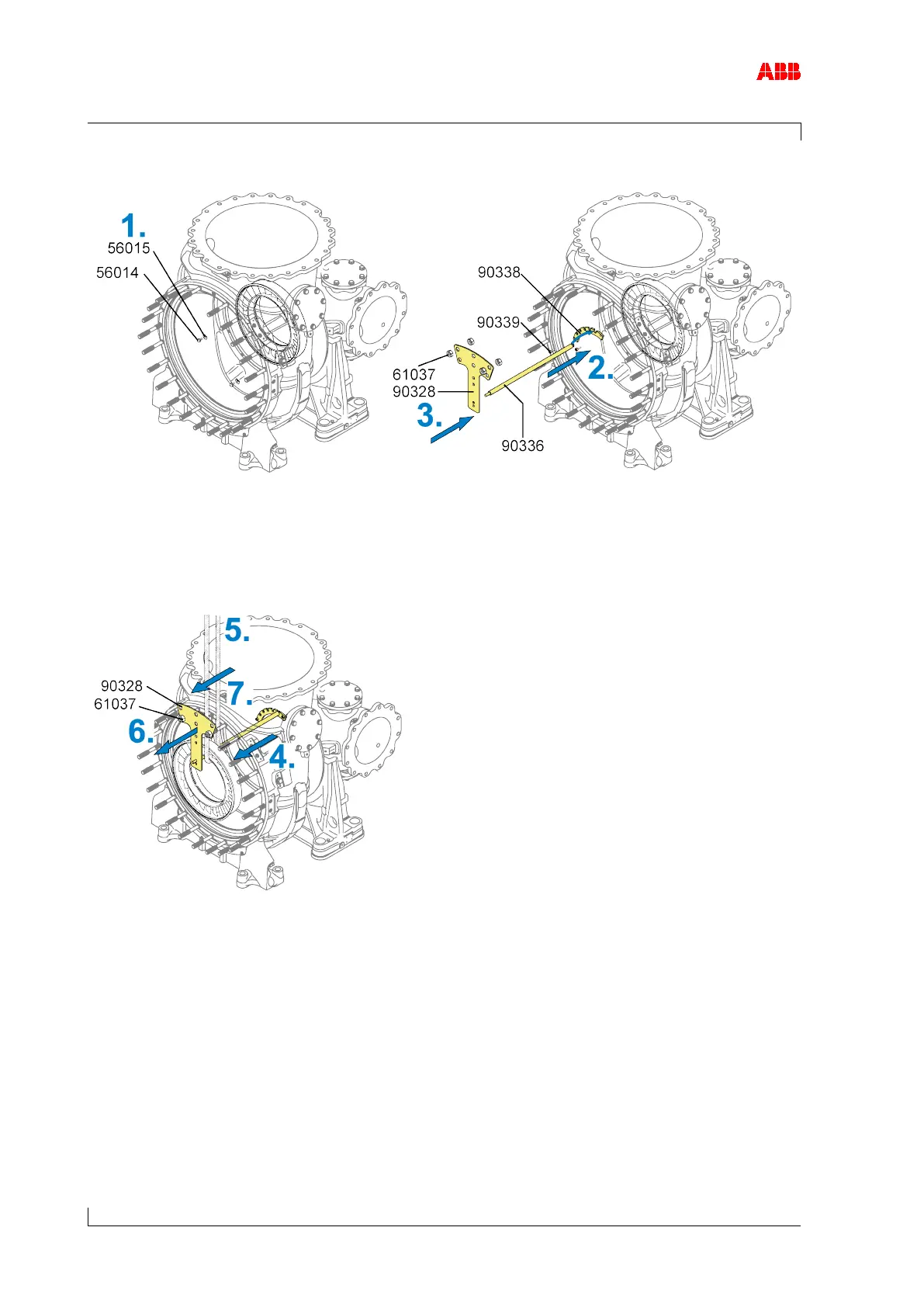 2. Secure retaining plate (90338) with screws (90339) and hook guide rod (90336) into retain-