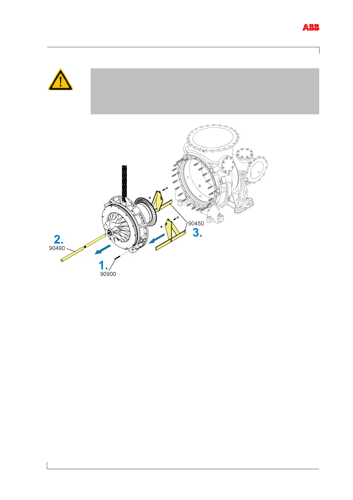 1. Evenly press off cartridge group by screwing three press-off screws (90900) into the des-
