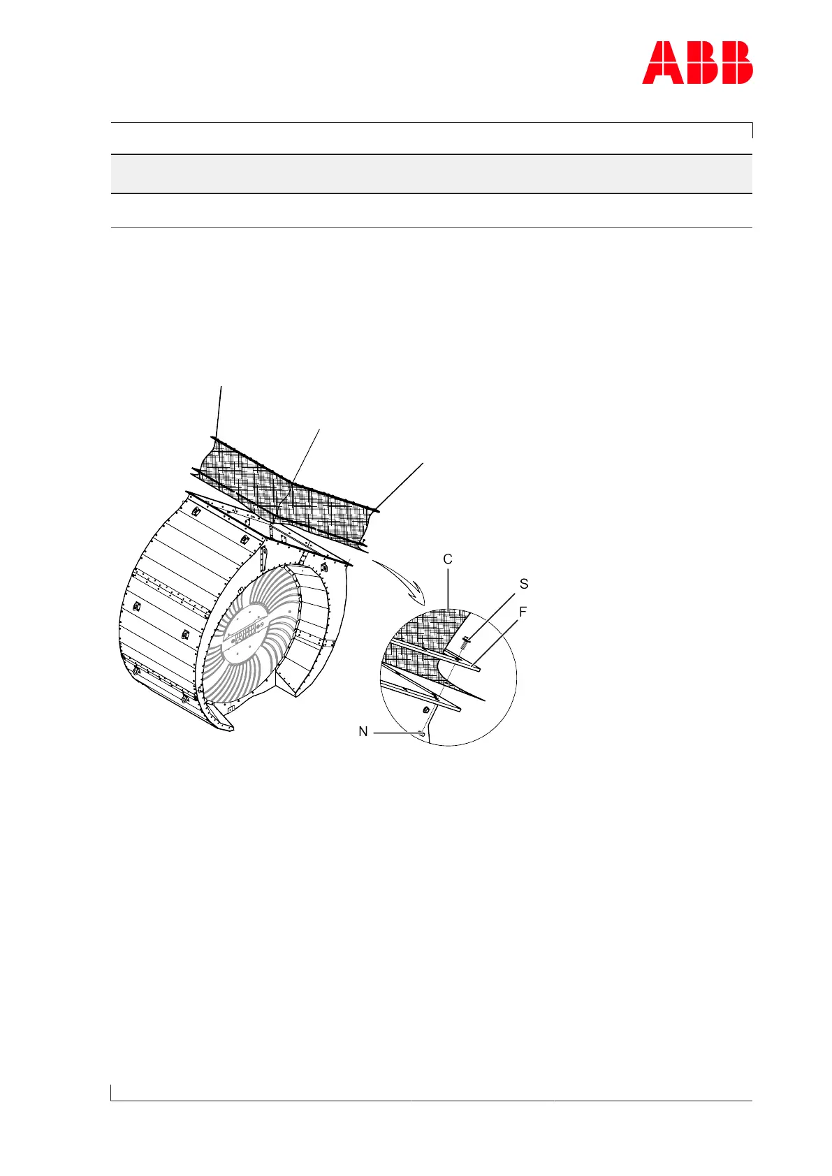 u Fit bellows(C) with frame(F), screws(S) and nuts(N) on the filter silencer casing.