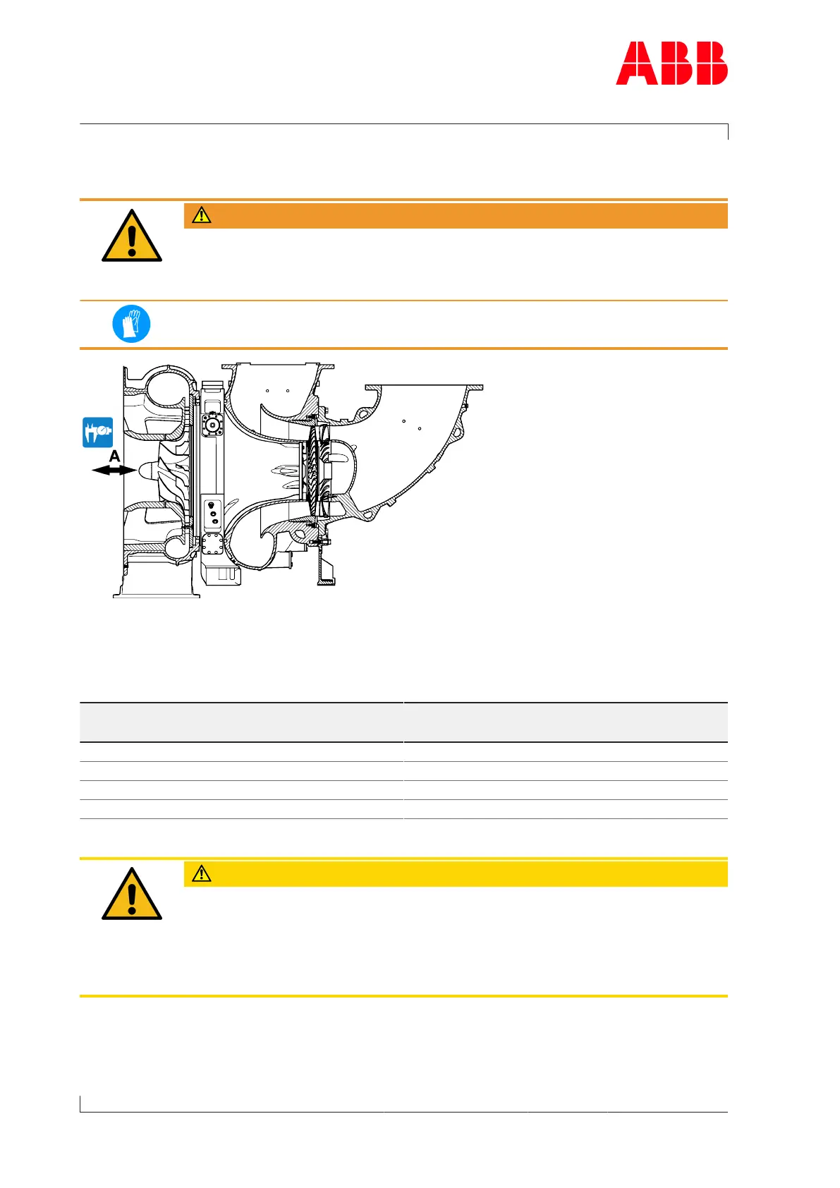 The axial clearance (A) of the rotor should always be measured before and after service work