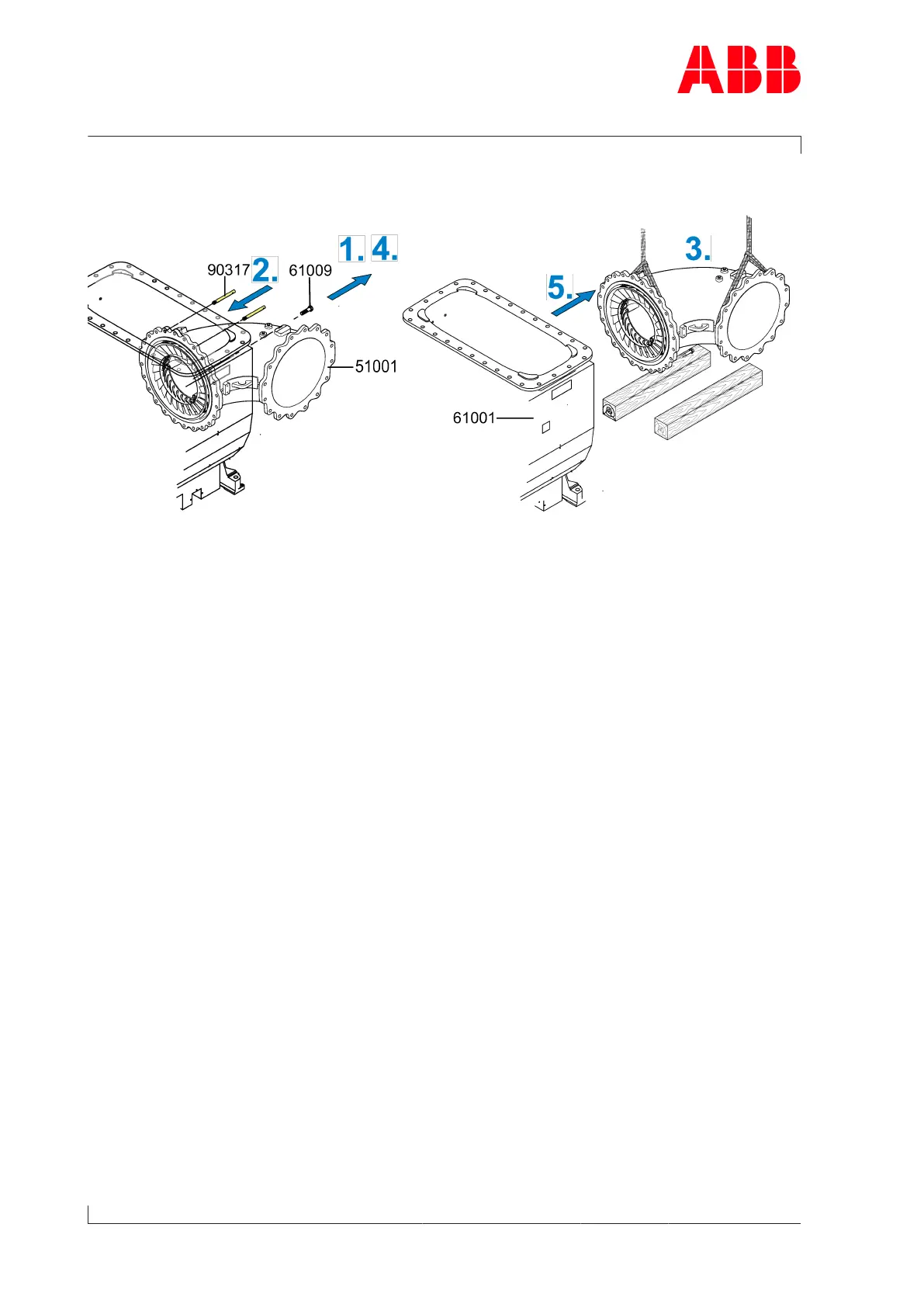 u If one of the screws (61009) shears off when loosening, an ABB Turbocharging Service