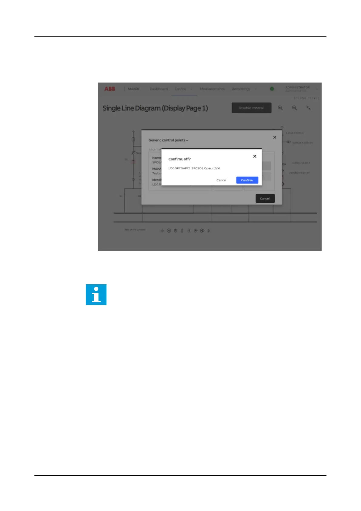 Figure 41: Button control dialog confirmation