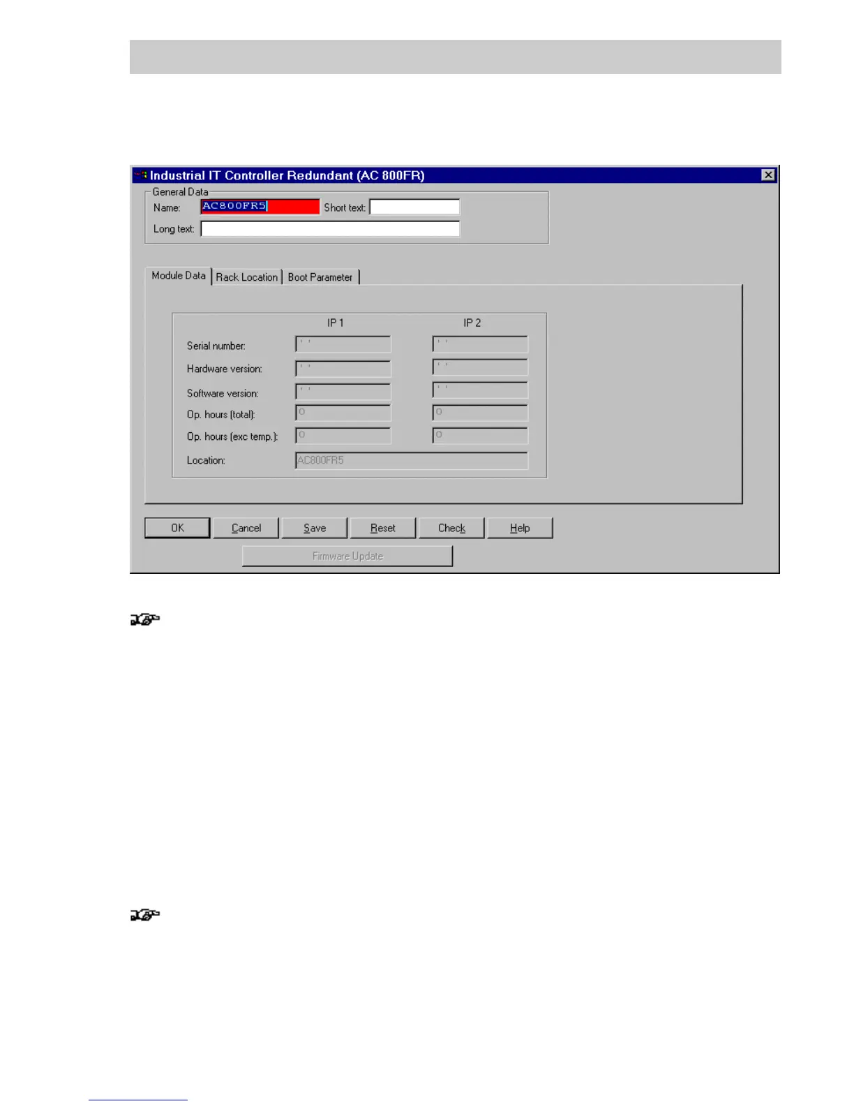 In the commissioning mode the "Firmware update" button appears for loading the firmware