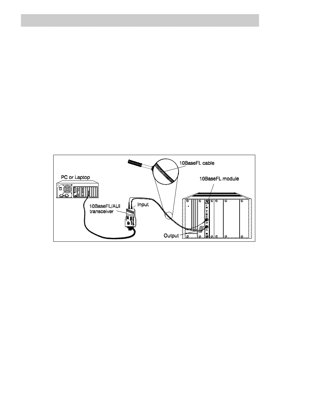 5. Link the 10BaseFL transceiver with the AUI interface of the node via the AUI