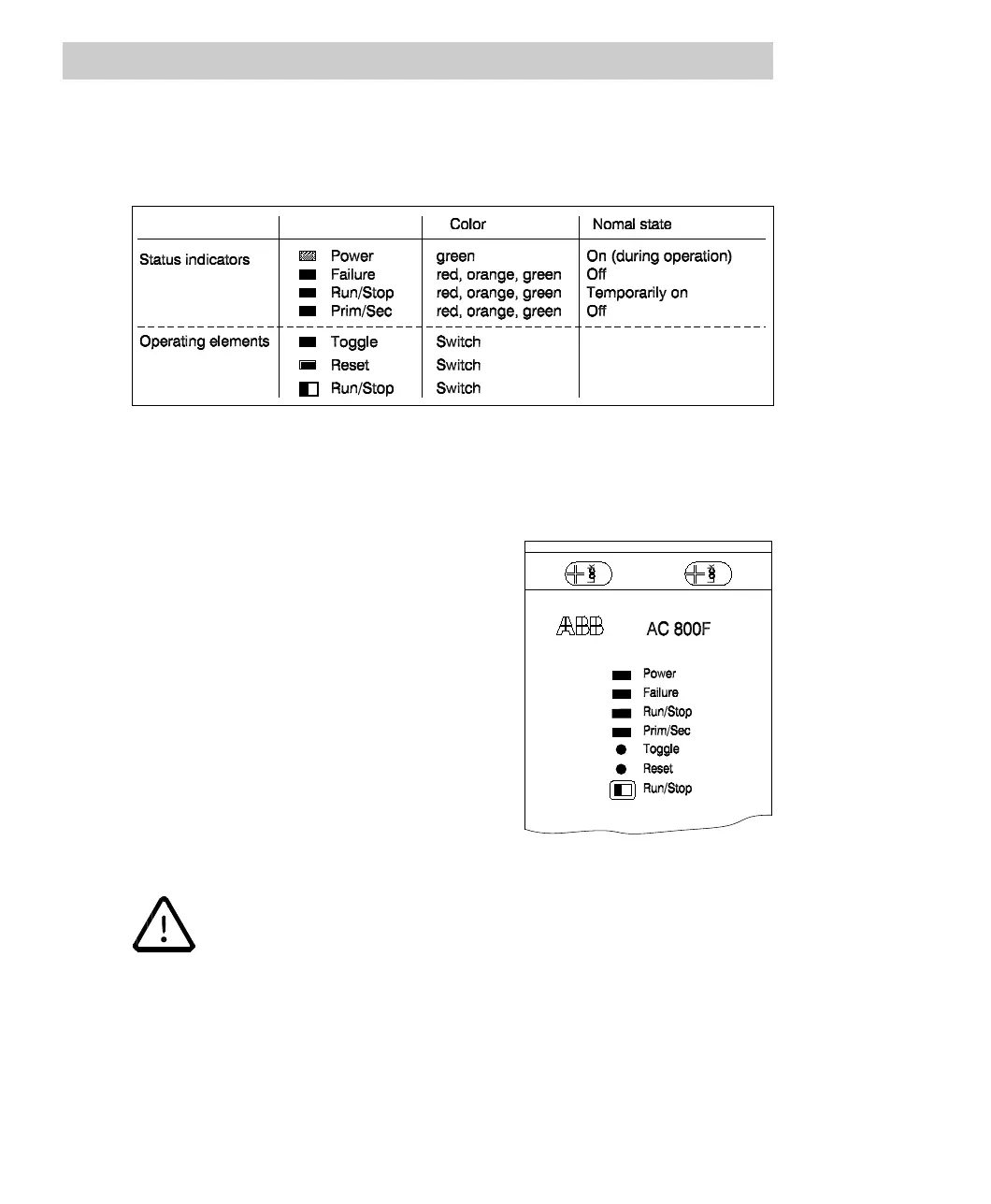 Figure 5-14 shows the status indicator LEDs and operating elements on the AC 800F