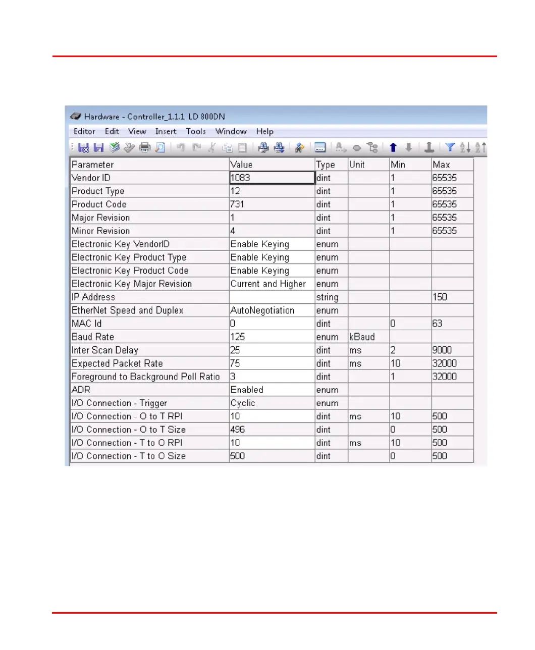 Figure 51. Hardware Editor – Settings for LD 800DN