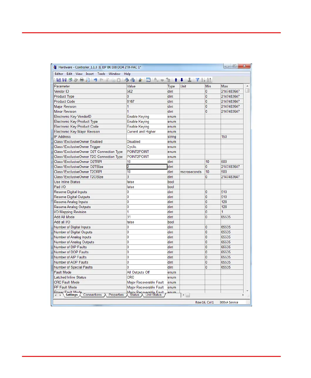 Figure 56. Hardware Editor – Settings for EtherNet/IP device