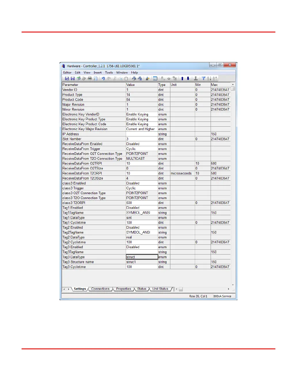 Figure 57. Hardware Editor – Settings for Allen Bradley Control Logix PLC
