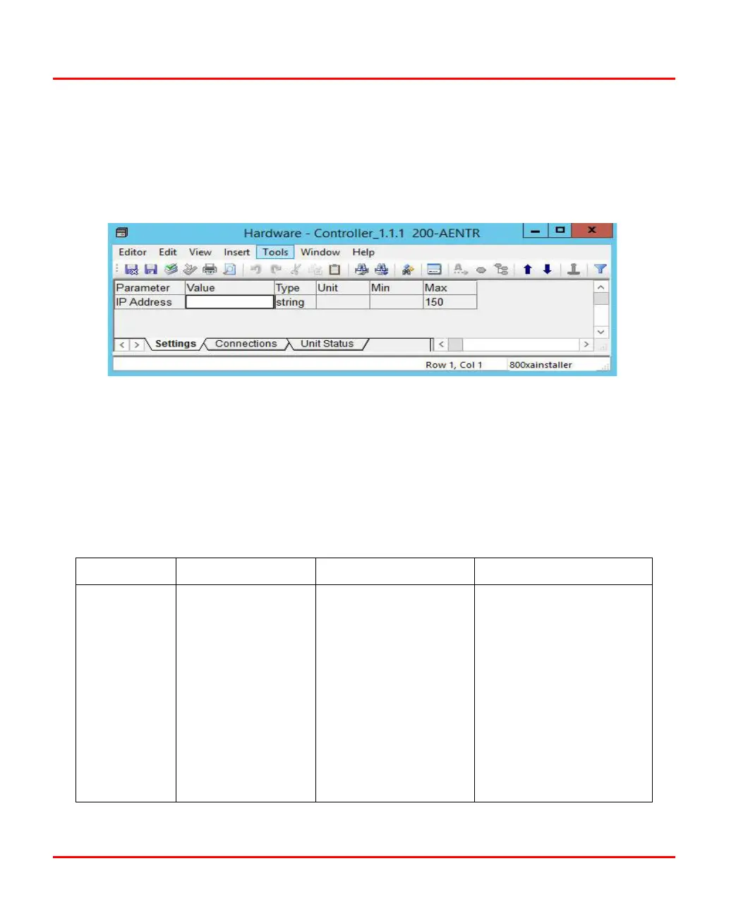 The Hardware Editor contains three tabs — Settings, Connections and Unit Status.