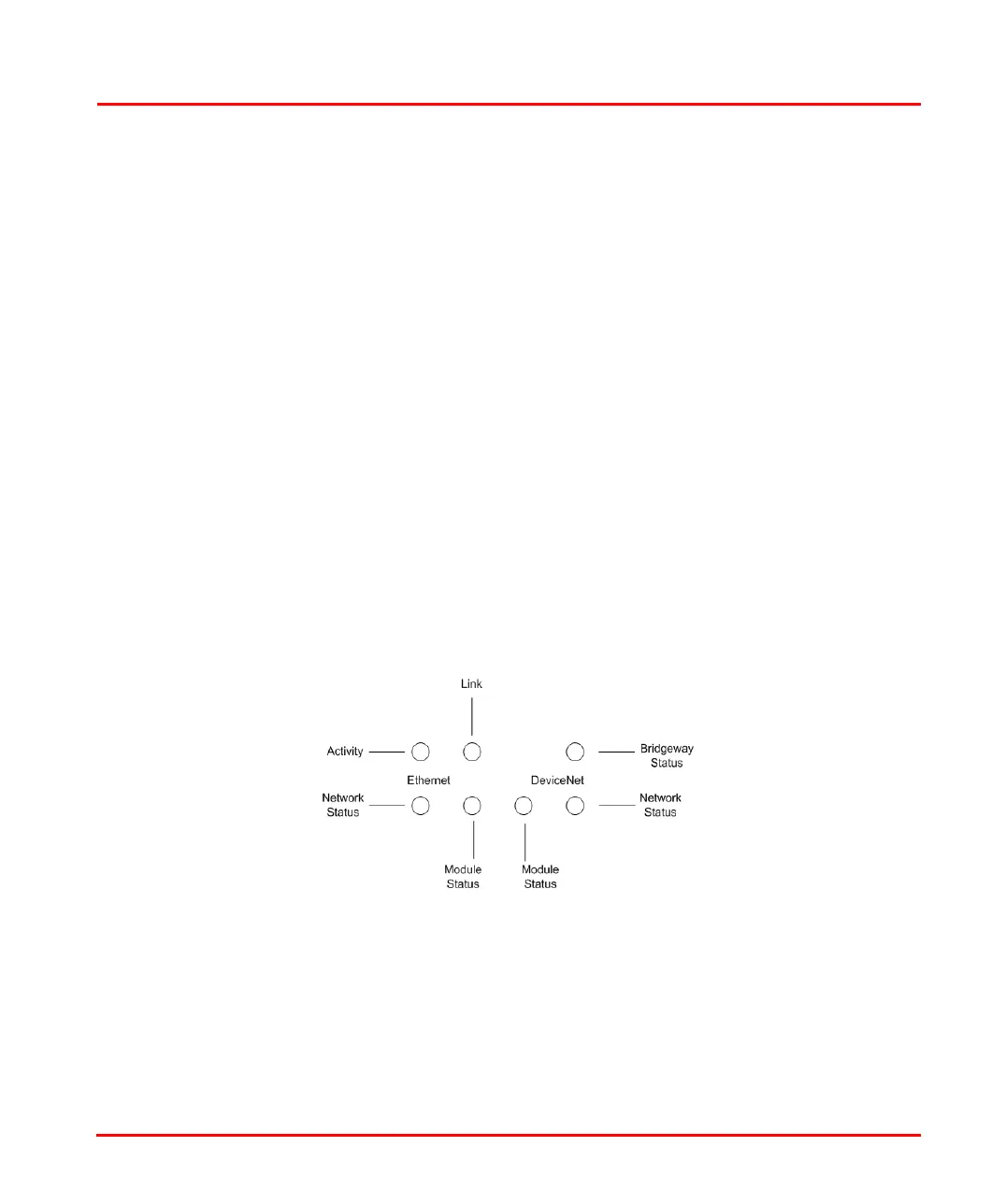 status of the module and the network interfaces. The layout of the LEDs is shown in