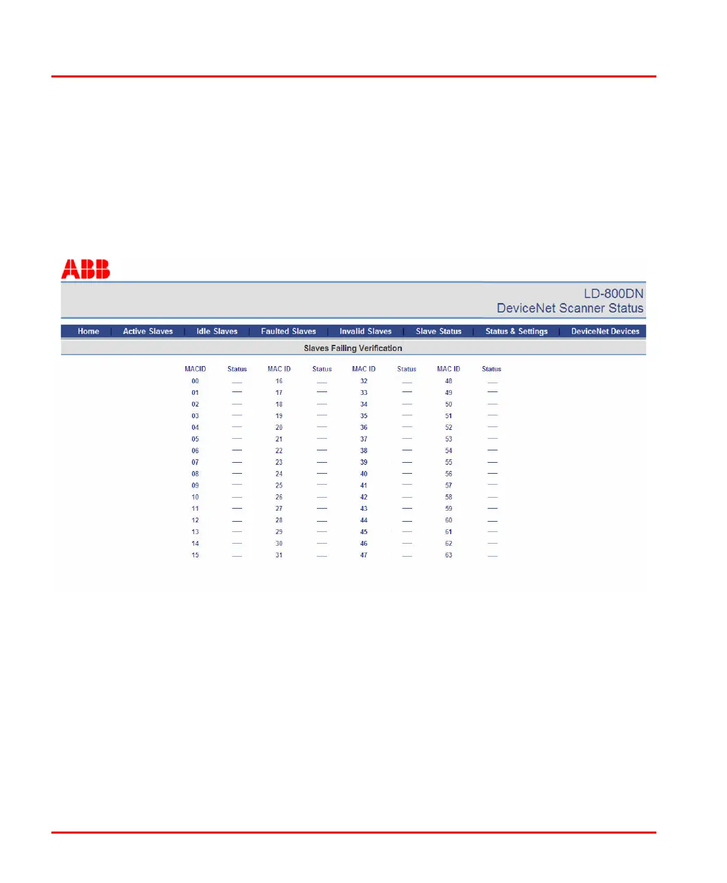 The Invalid Slaves page, as shown in, indicates DeviceNet slave nodes that are not