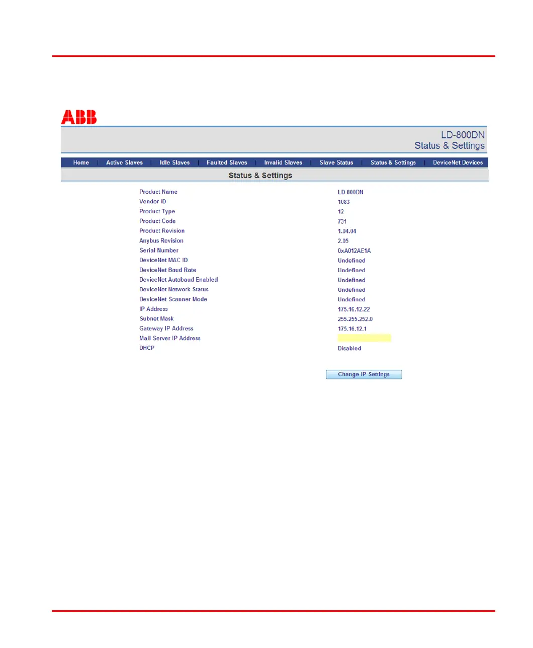 Section 6 Linking Device LD 800DN Status & Settings Web Page