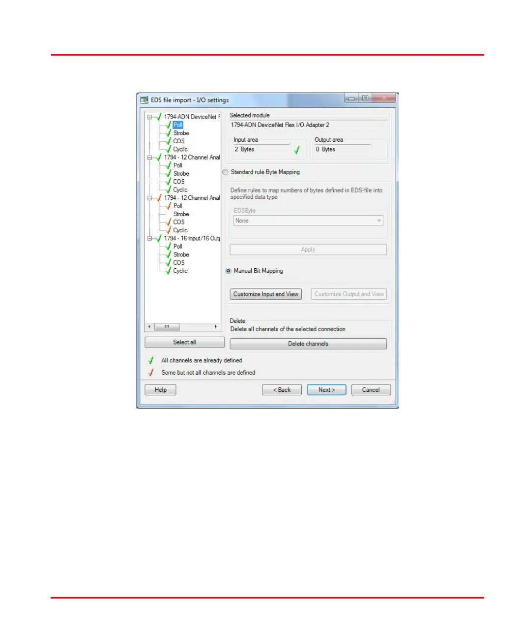 Section 3 Device Import Wizard I/O Settings