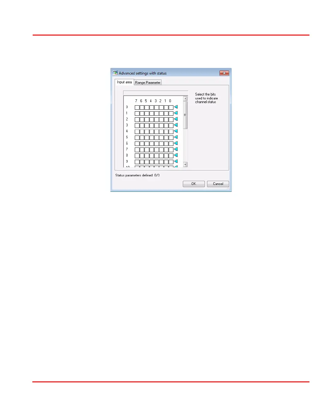 and Signal Range Parameter selection. To specify the Status Parameters, click and