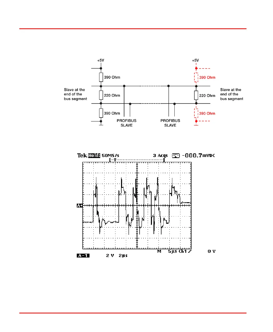 Figure 42. Incorrect terminated PROFIBUS line (termination only on one side)