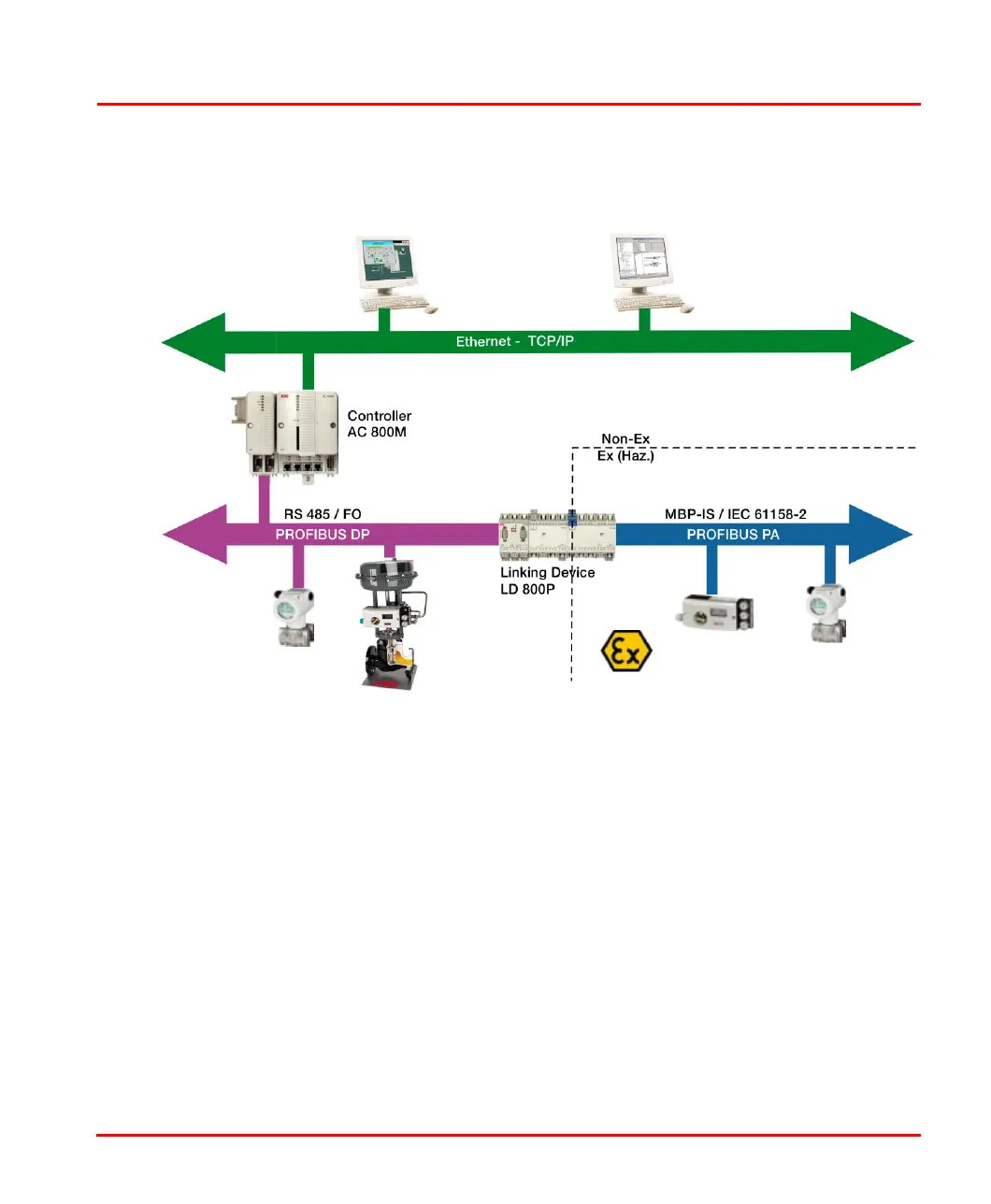 the field, also intrinsic safety (RS485-IS) via DP-Ex barriers into hazardous area.
