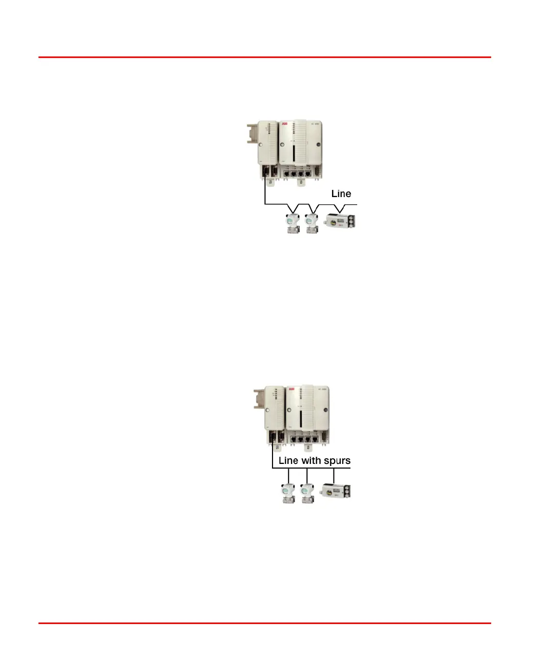 With this topology, the fieldbus devices are connected to the bus segment through a
