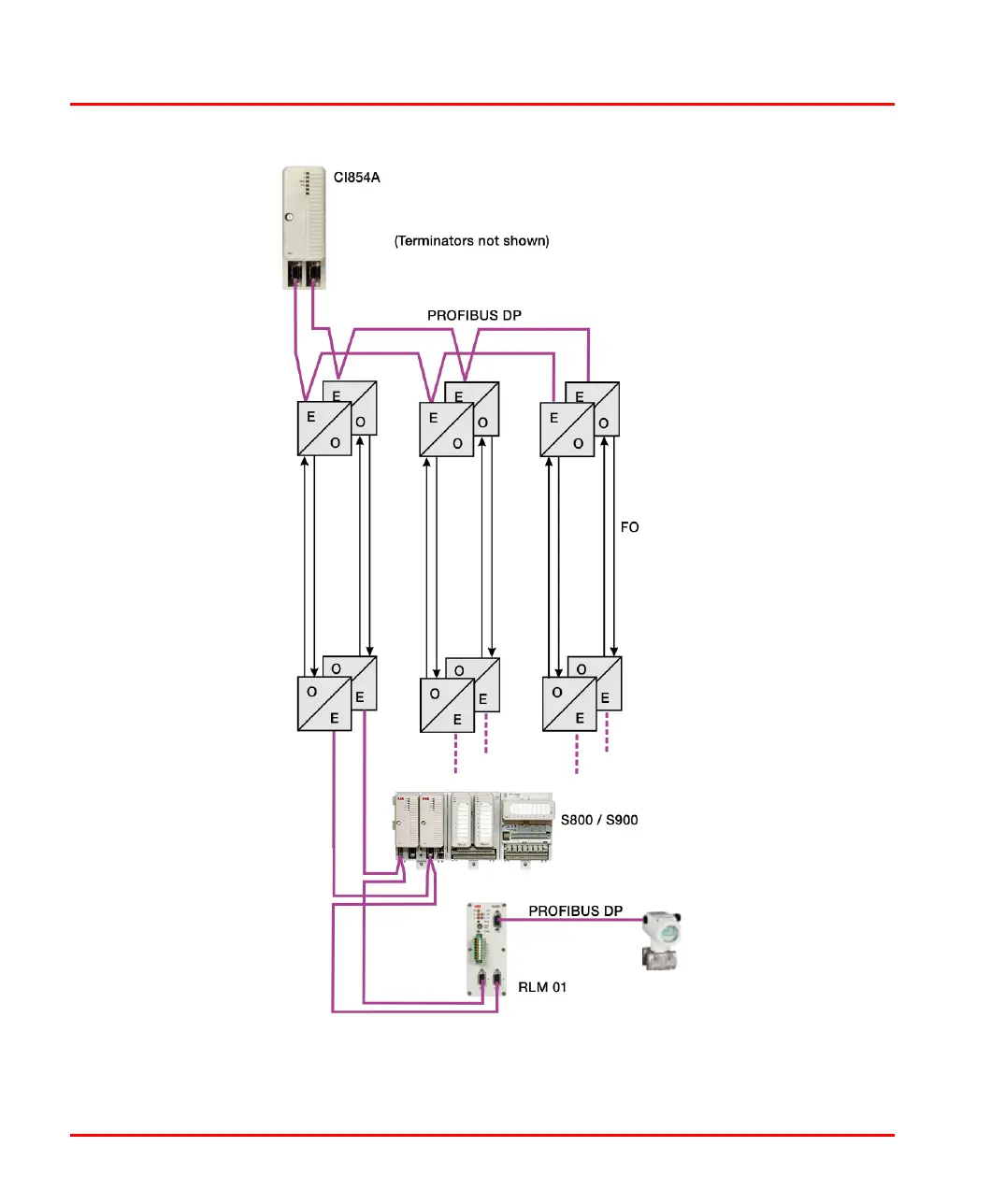 Optical link modules and AC 800M in a star topology Section 3 Fieldbus Topologies