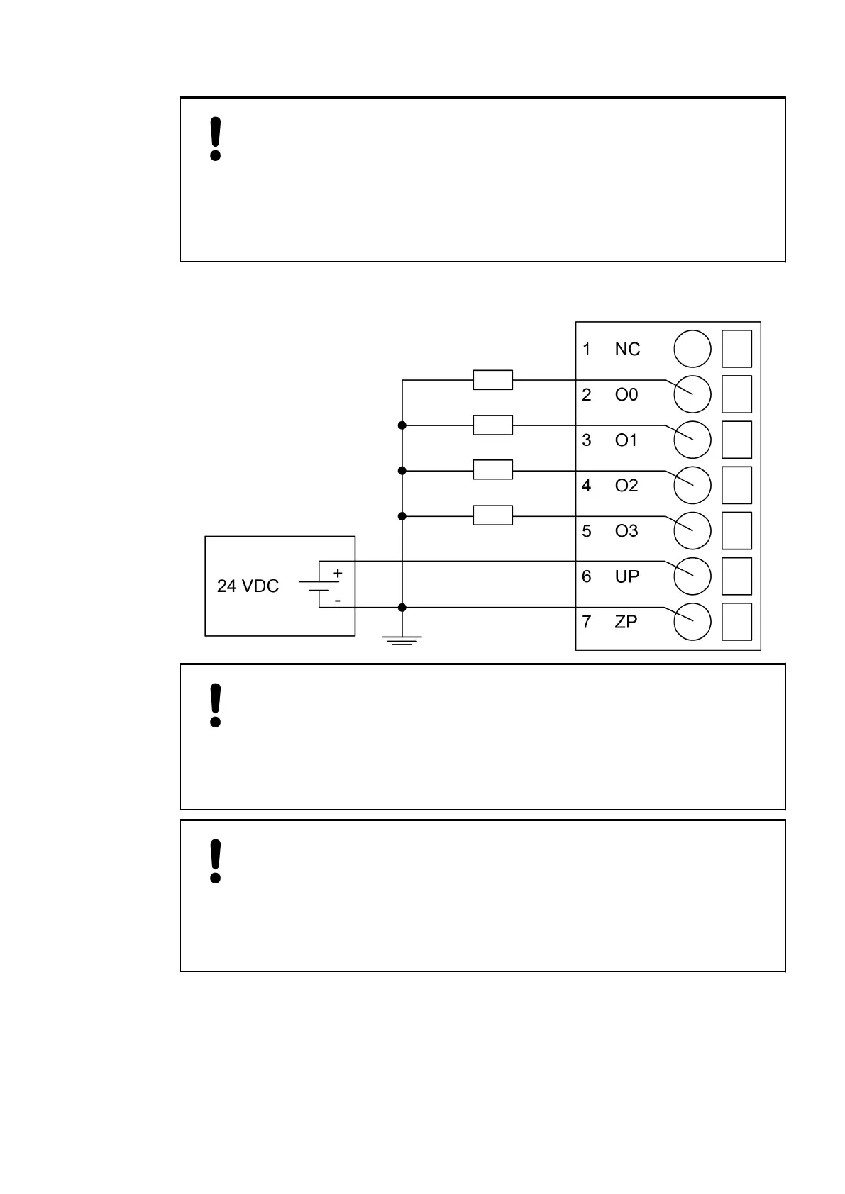 The following figure shows the electrical connection of the digital output module TA5105-4DOT: