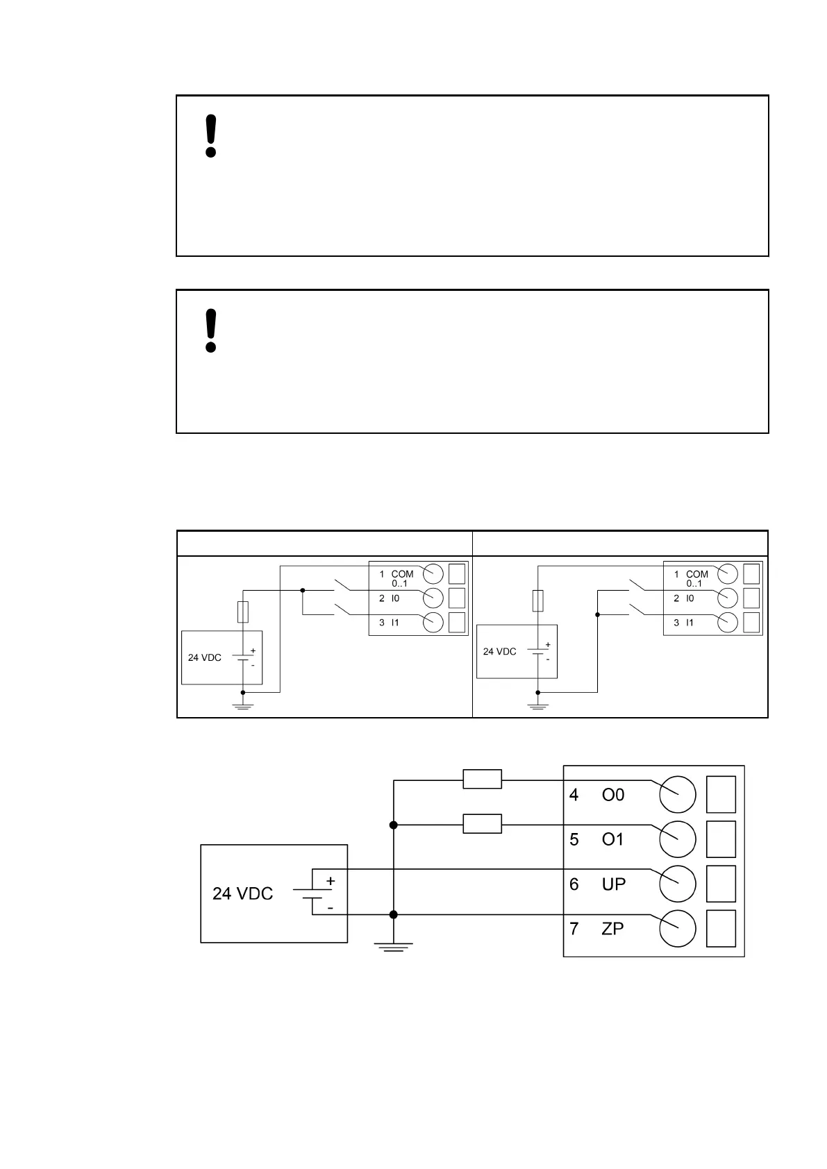 The following figure shows the electrical connection for inputs of the digital input/output module