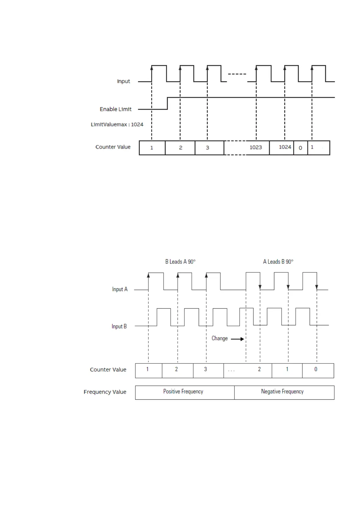 In this encoder counter mode, an increasing count results when input B is 90° ahead of input A.
