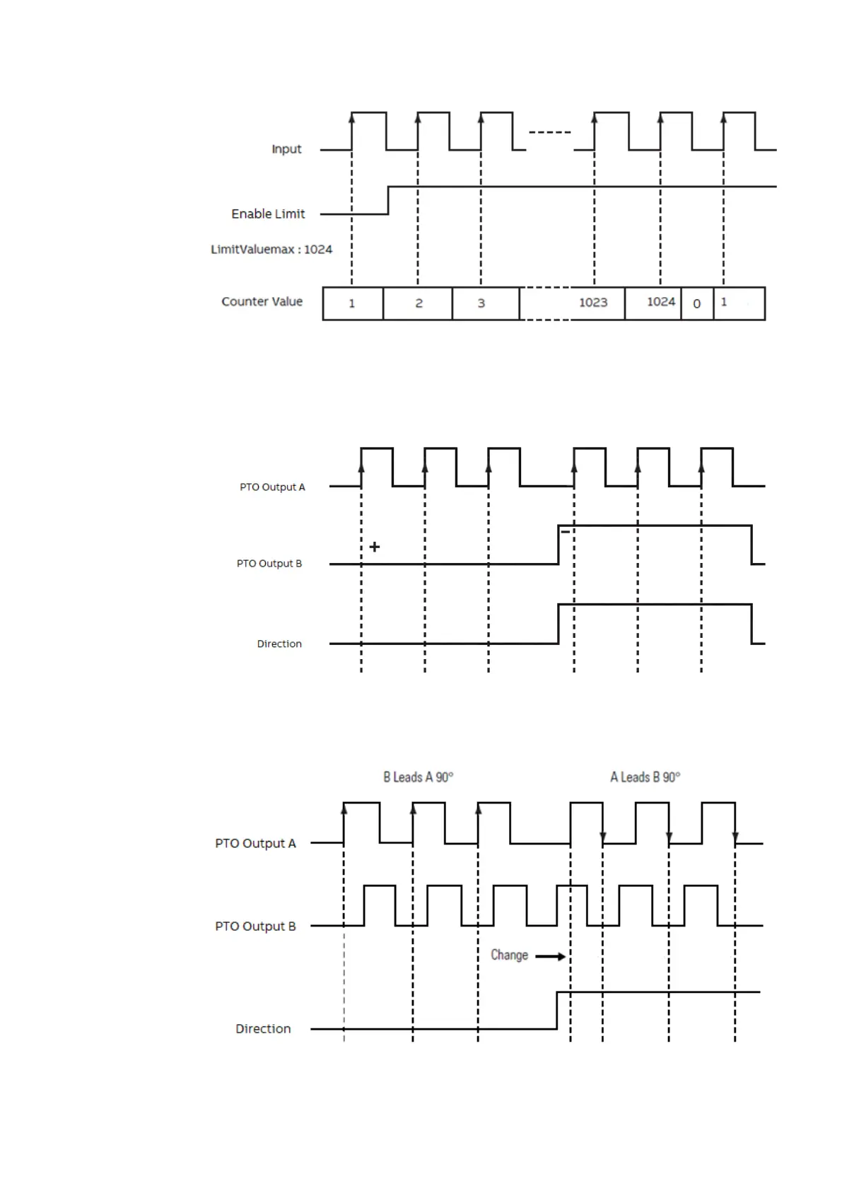 will lead by 90° or PTO output channel B will lead by 90° depending on direction.