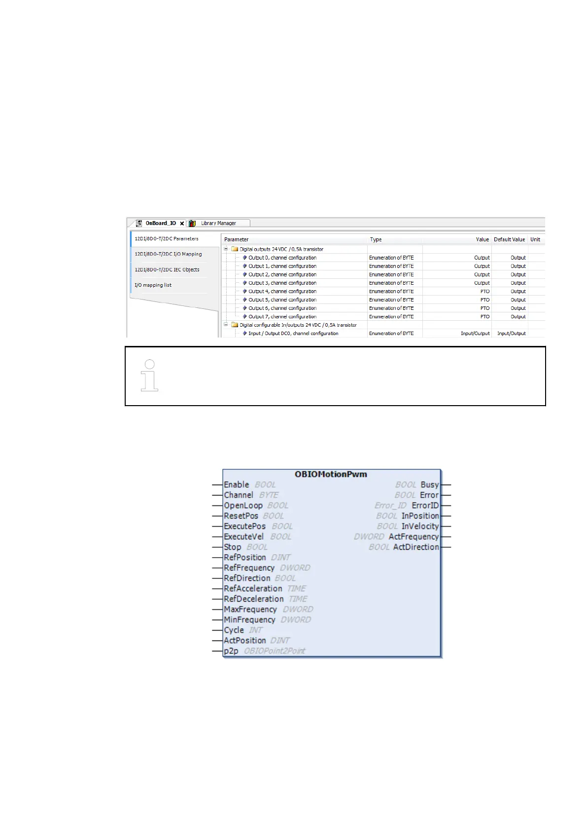 If the user configures the output 4...7 as PWM using the “OBIOMotionPWM” function block, up