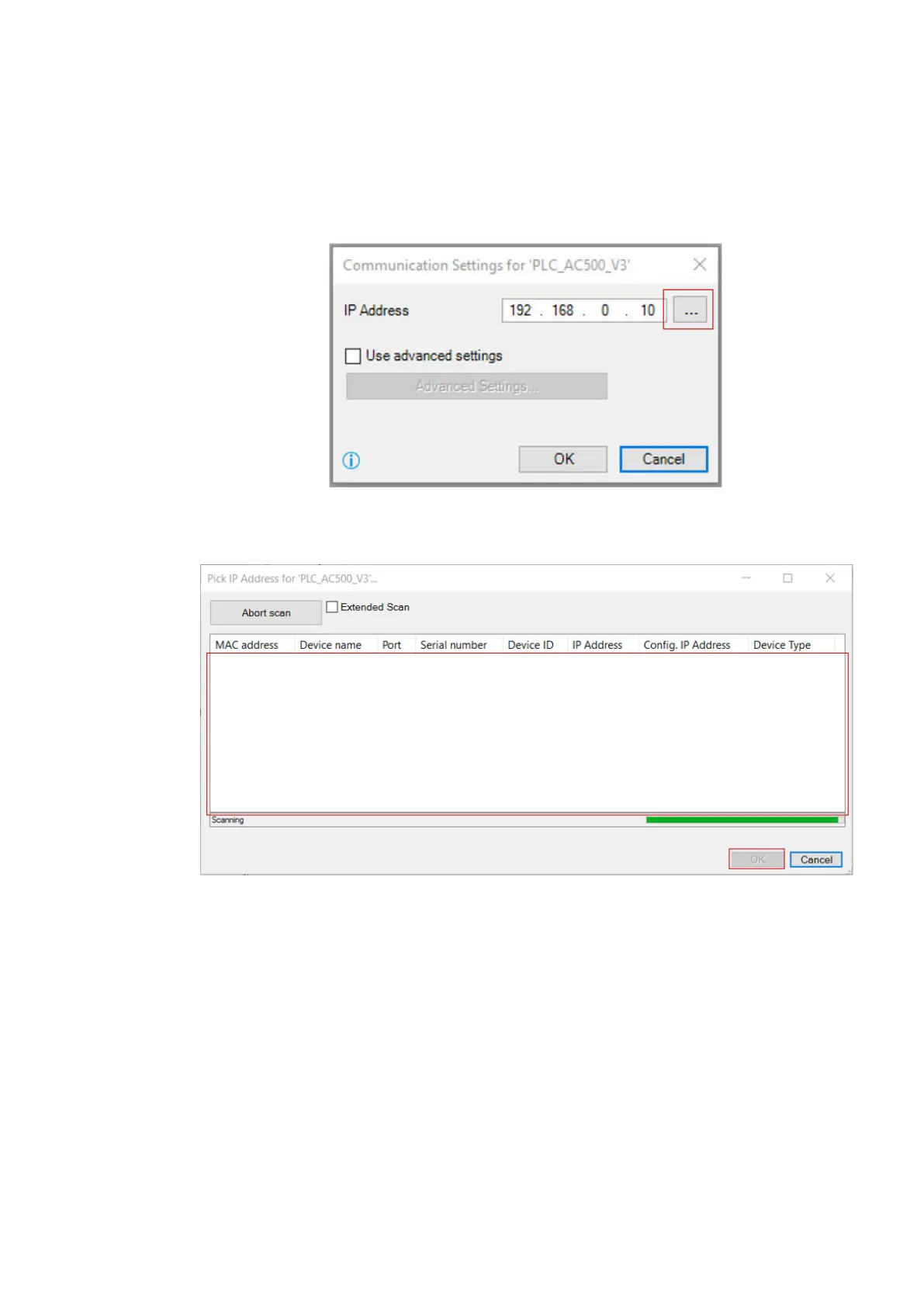 “Pick IP Address for "PLC_AC500_V3"” opens.