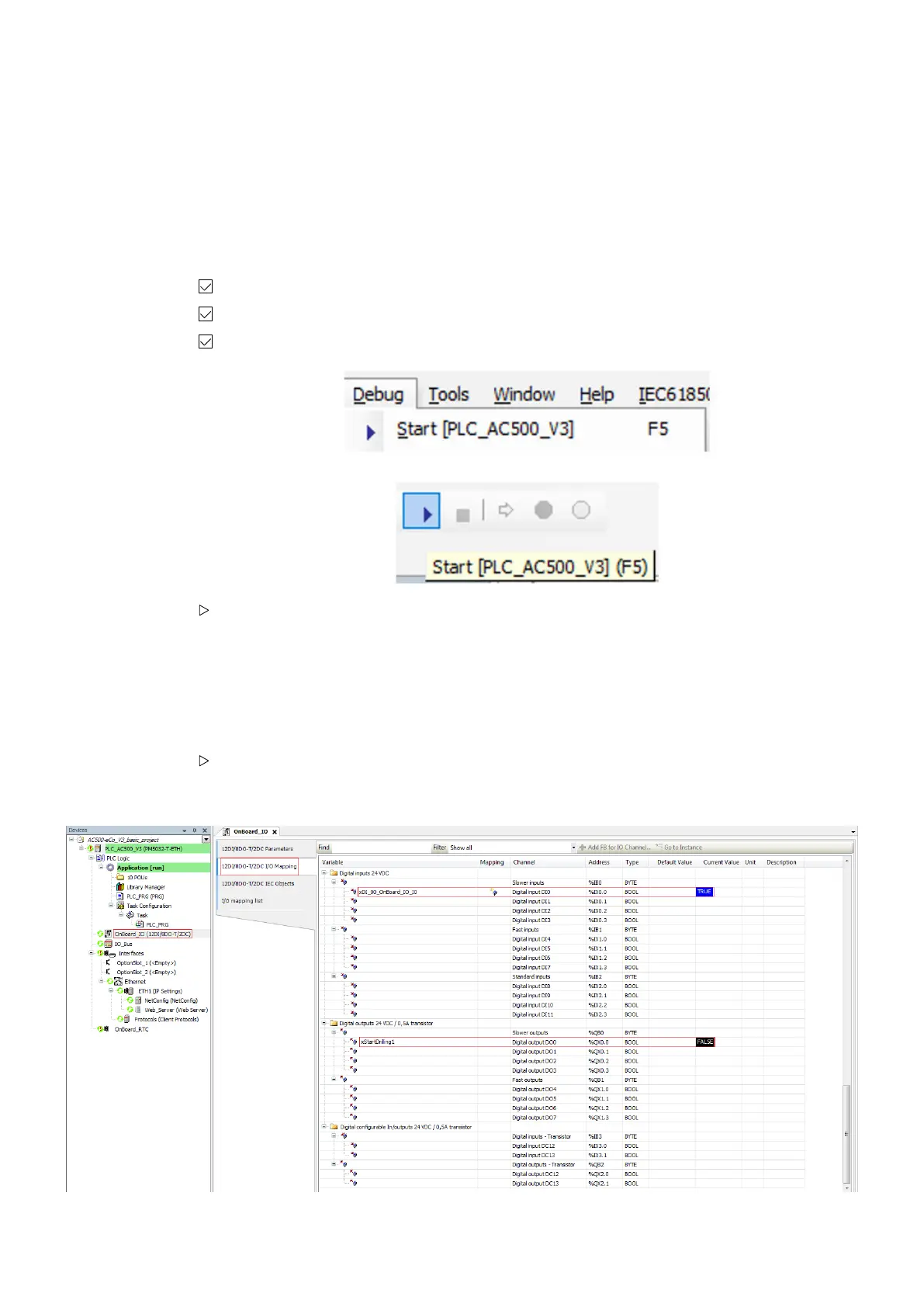 Select menu “Debug è Start [PLC_AC500_V3]”.