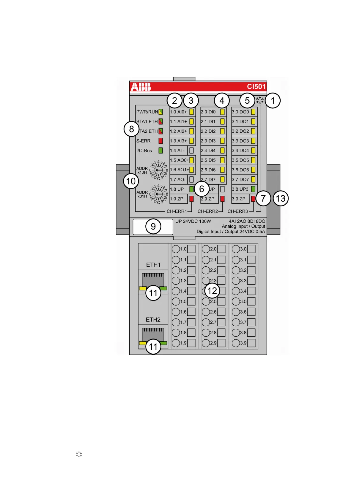 8 5 system LEDs: PWR/RUN, STA1 ETH, STA2 ETH, S-ERR, I/O-Bus