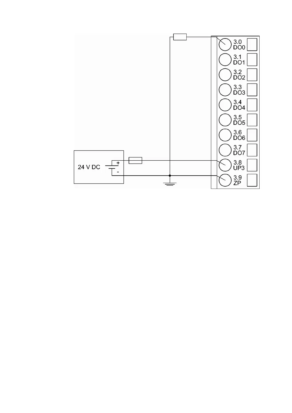 The following figure shows the connection of resistance thermometers in 2-wire configuration to