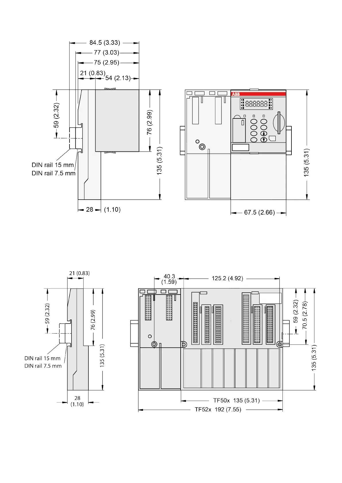 Fig. 216: Terminal Bases with Processor Modules, side view and front view