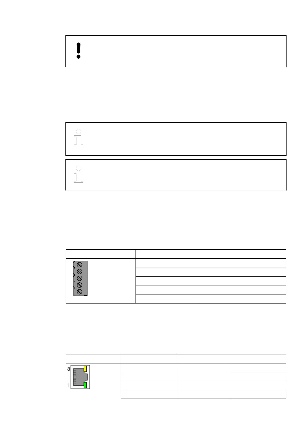 The Ethernet interface is carried out via a RJ45 jack. The pin assignment of the Ethernet inter-