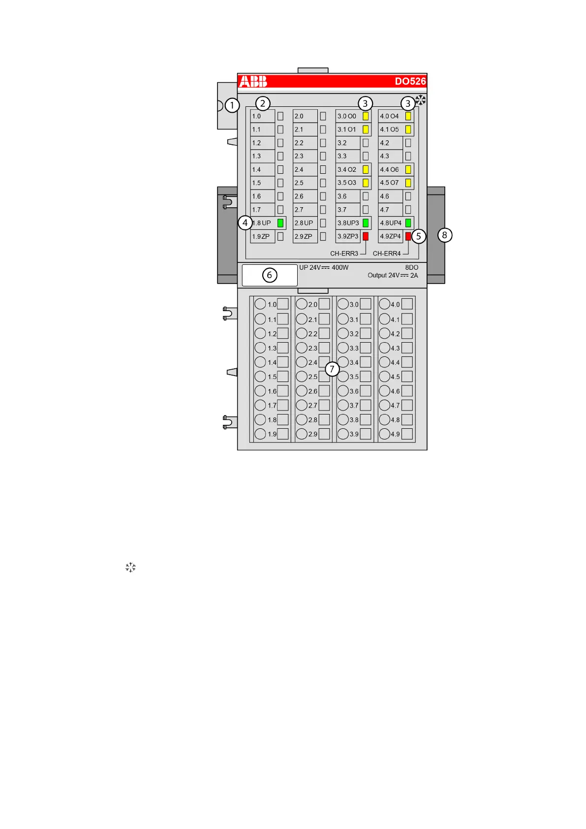 4 3 green LEDs to display the states of the process supply voltage UP, UP3 and UP4