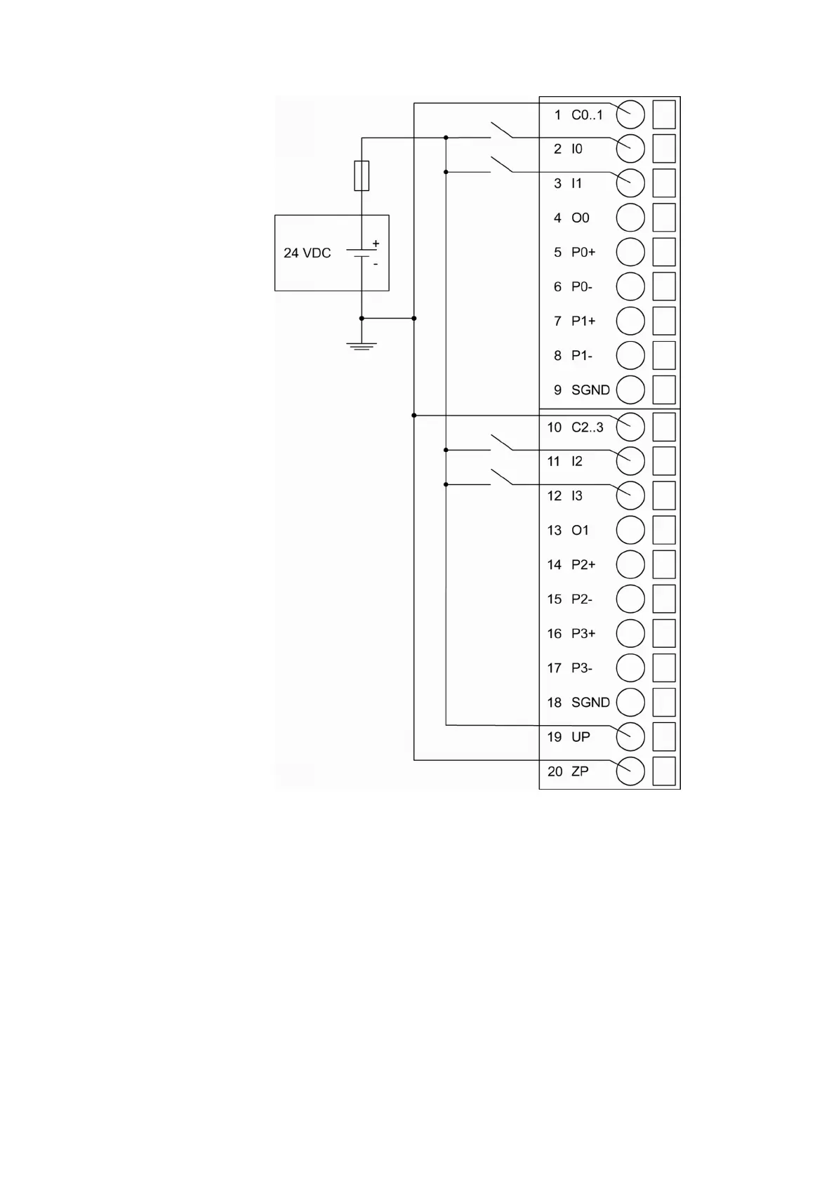 Fig. 105: Electrical connection of inputs to the FM562 - sink inputs