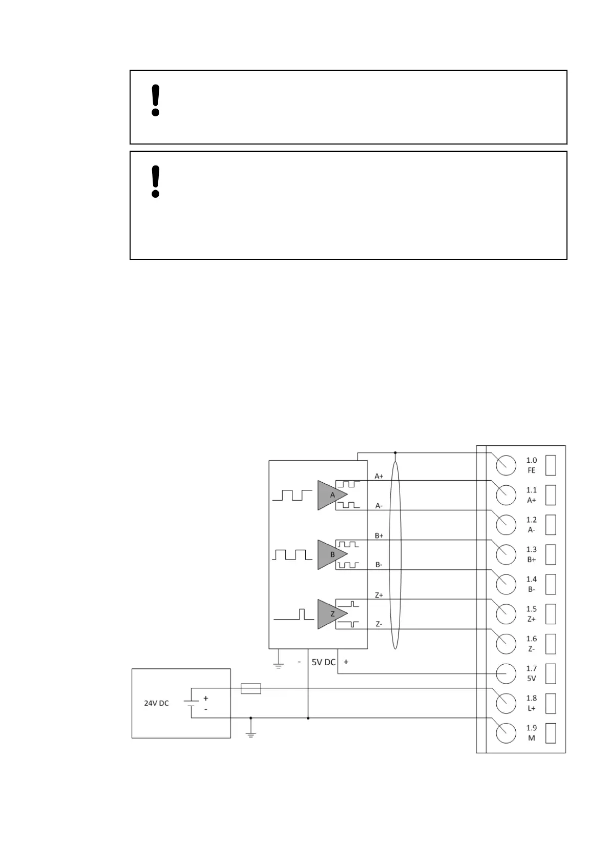 The encoder is powered by the 5 V power supply which is integrated in the FM502-CMS.Connection of