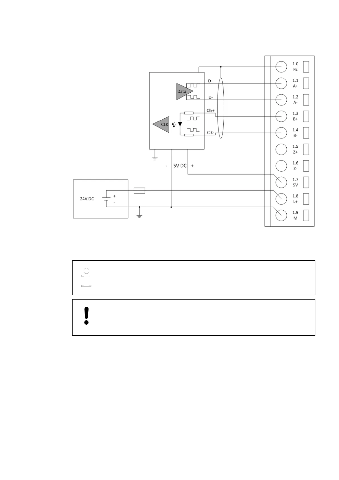 The encoder can optionally be powered by the 5-V-power-supply which is integrated in the