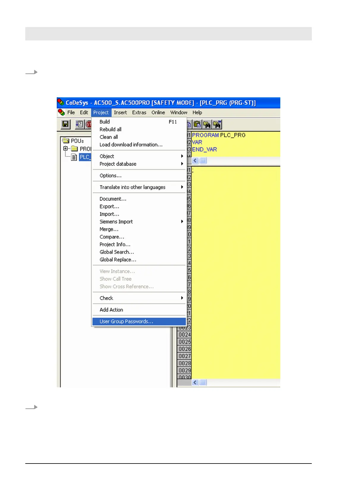 Go to “Project è User Group Passwords …” and set the password for Level 0 User Group, which shall