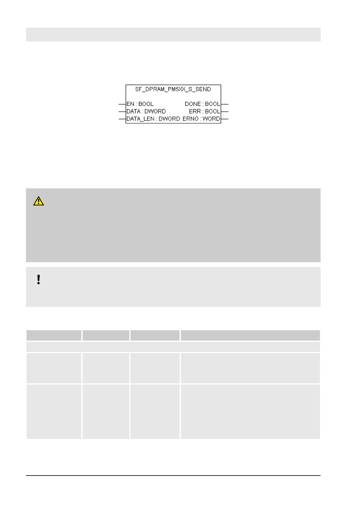 Table 28: FB Name: SF_DPRAM_PM5XX_S_SEND function