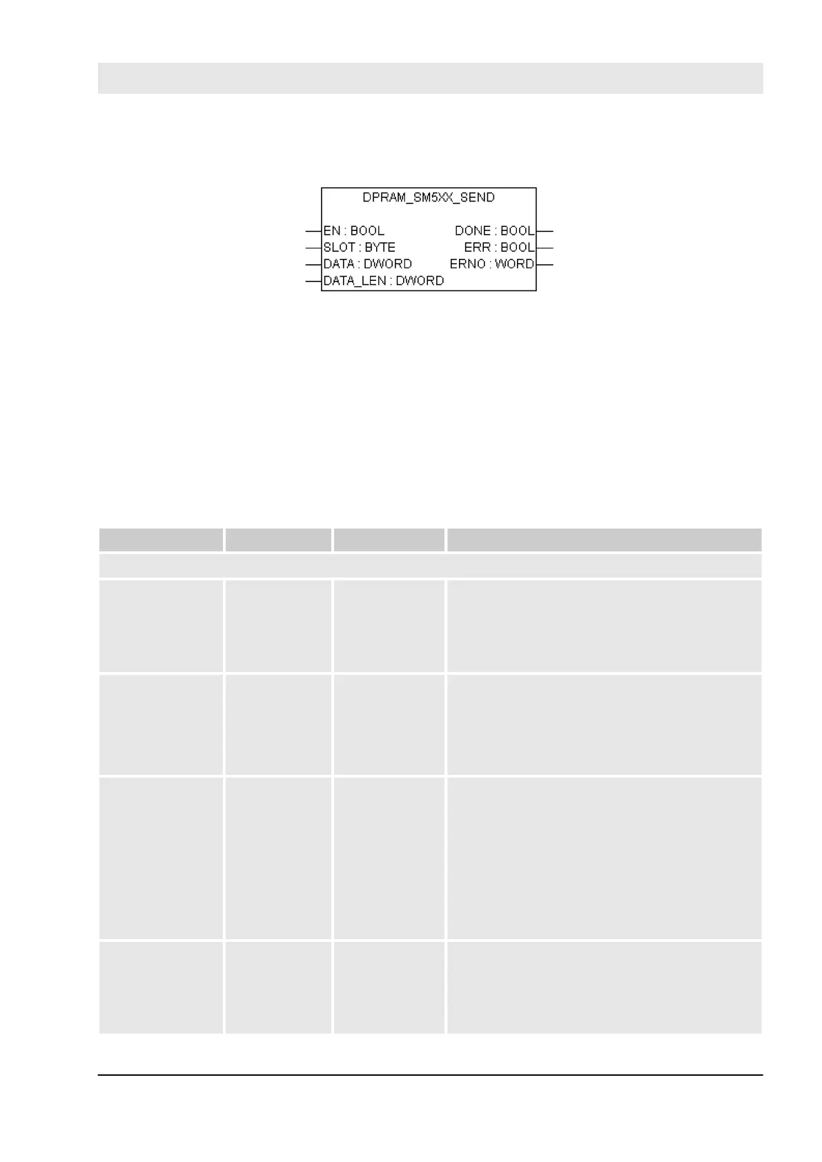 Caution: Sending data using the DPRAM_SM5XX_SEND function block is edge-triggered, i.e. each sending