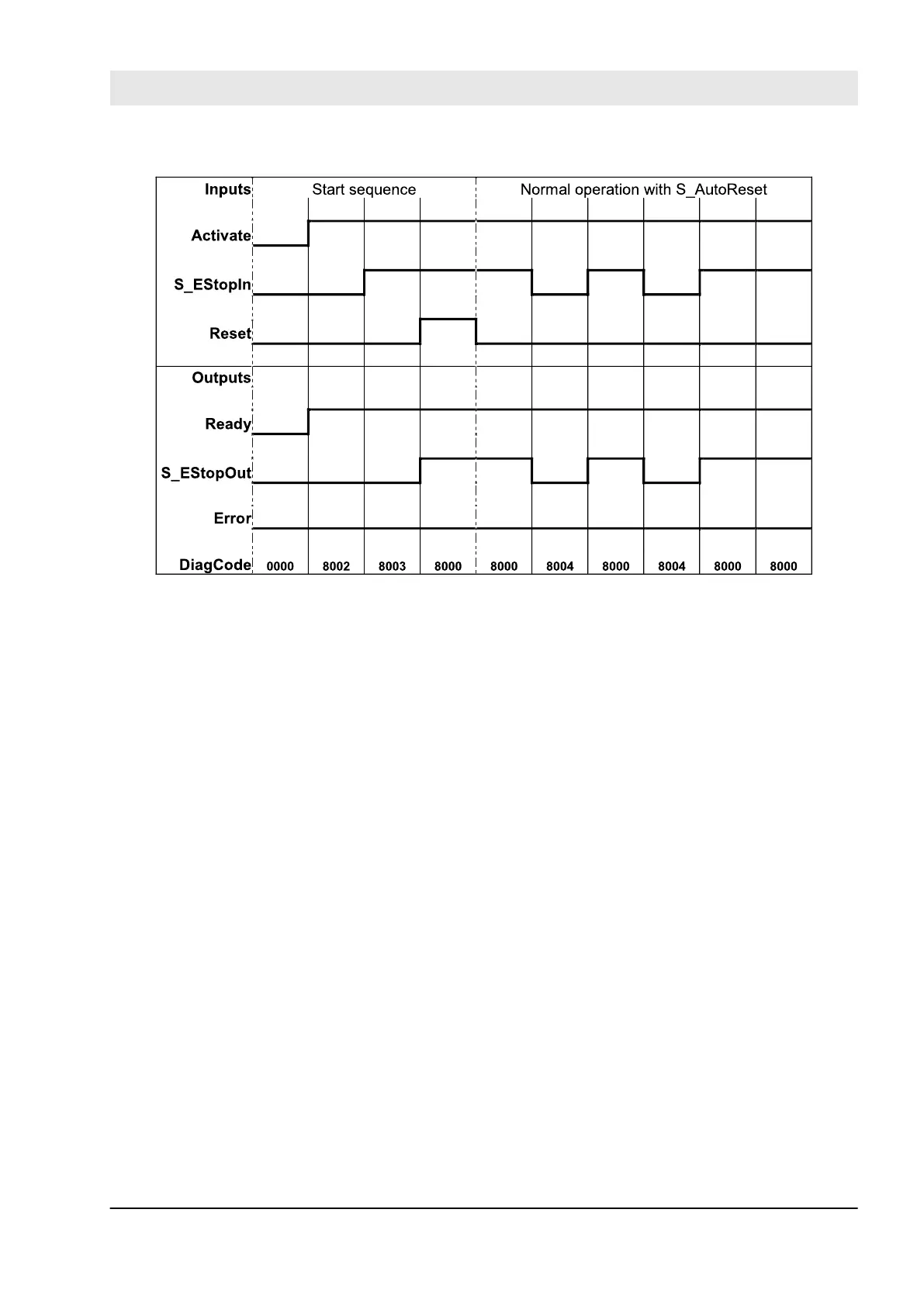 S_EStopOut is set to FALSE. In case of a static TRUE signal at the Reset input, the DiagCode output indi-