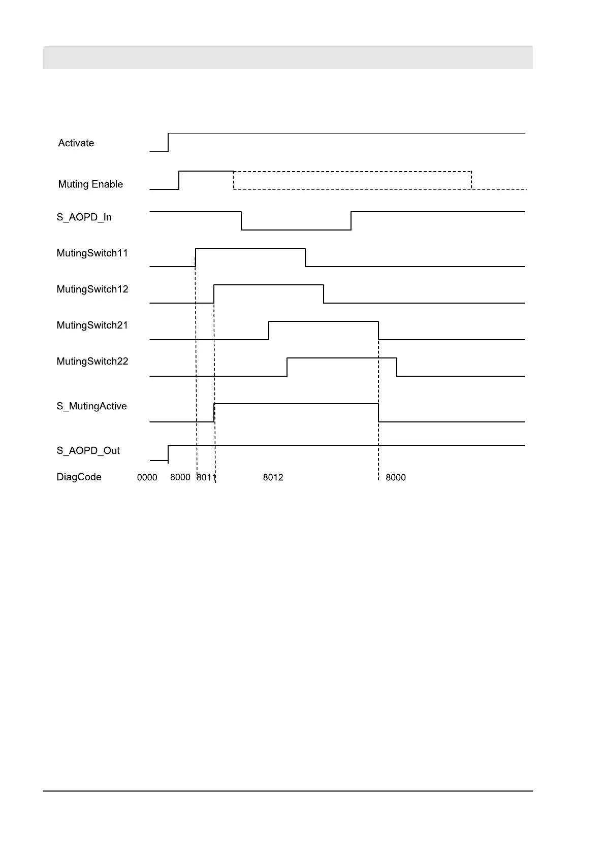 In the event of an error, the S_AOPD_Out and S_MutingActive outputs are set to FALSE. The DiagCode