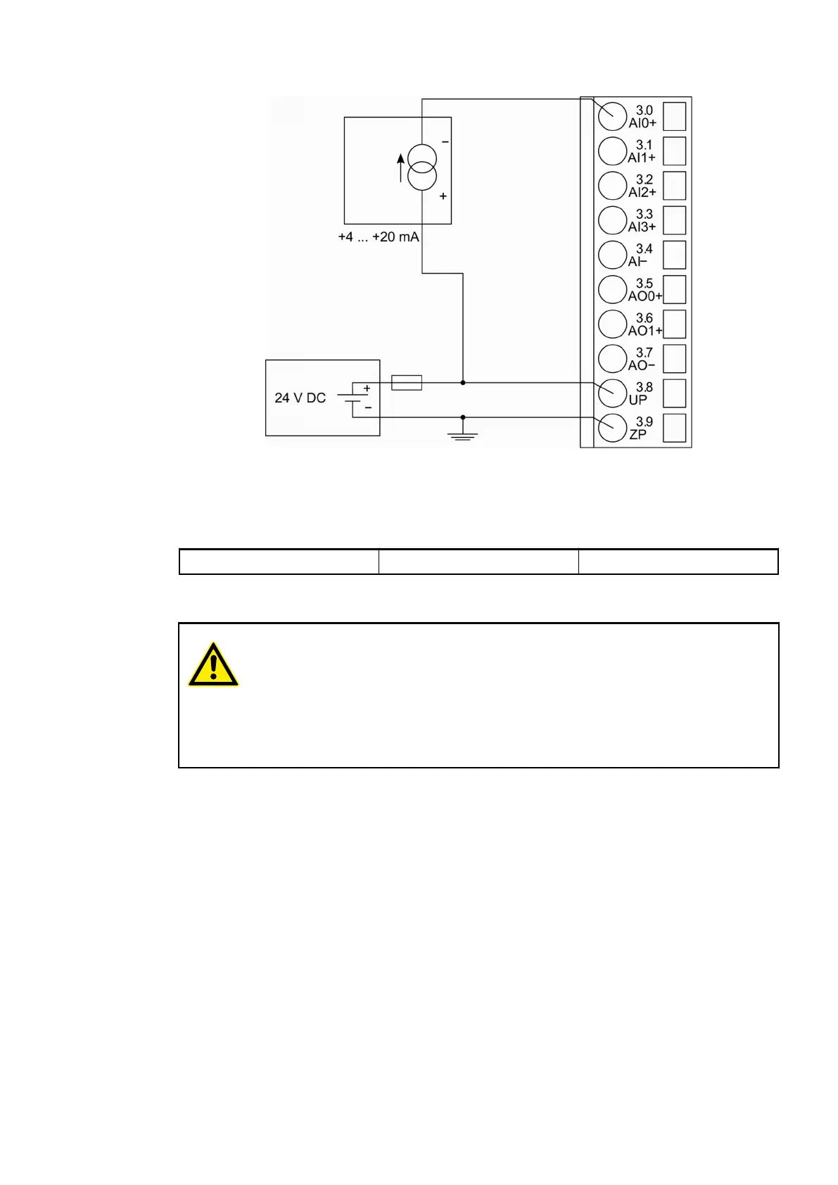 Fig. 80: Connection of passive-type analog sensors (current) to the analog inputs