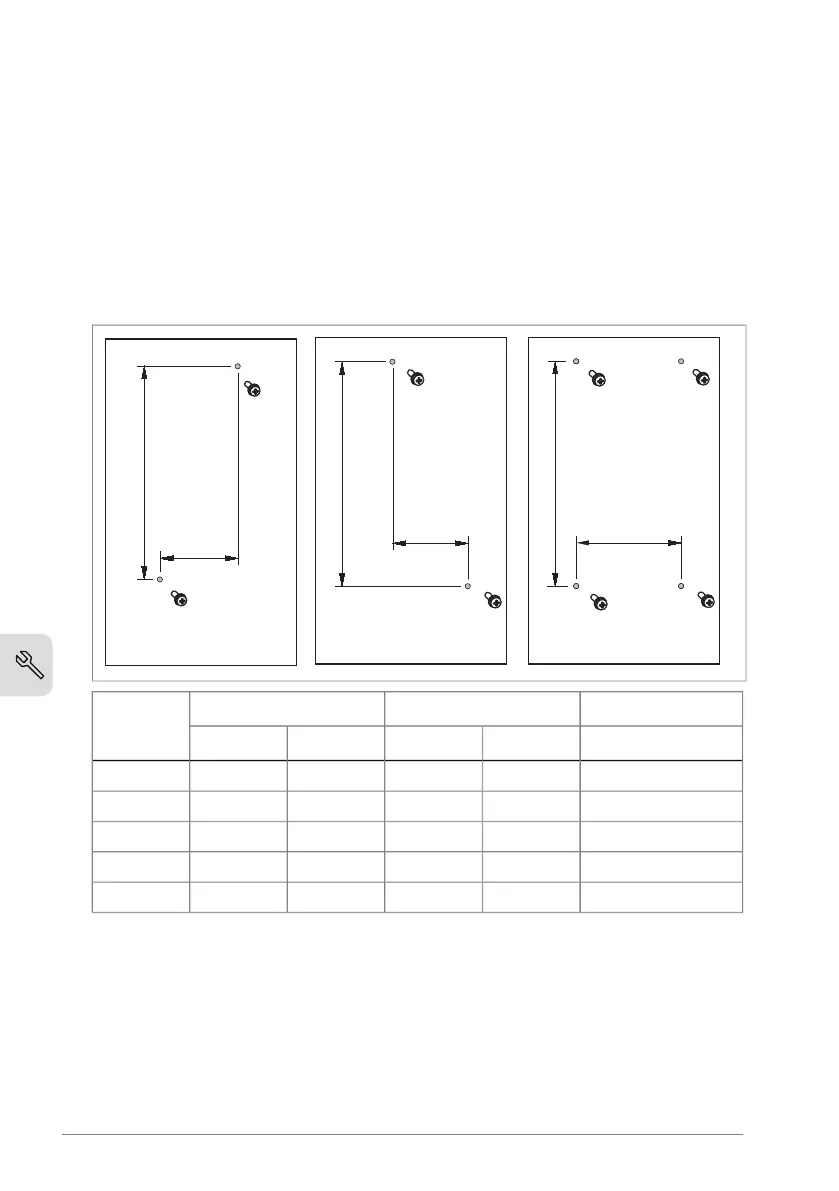 3. Install the mounting screws into the holes. Refer to Dimensions and