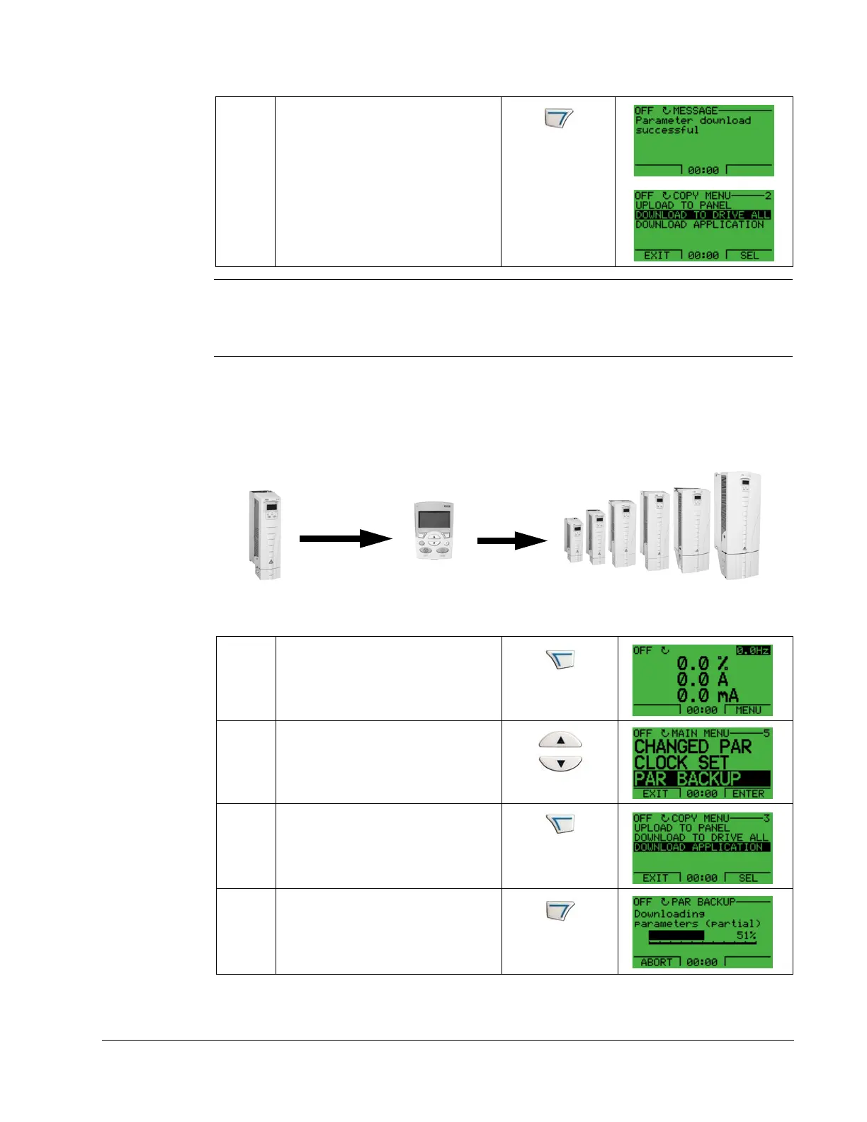 parameters. Only use this function to restore a drive, or to transfer parameters to